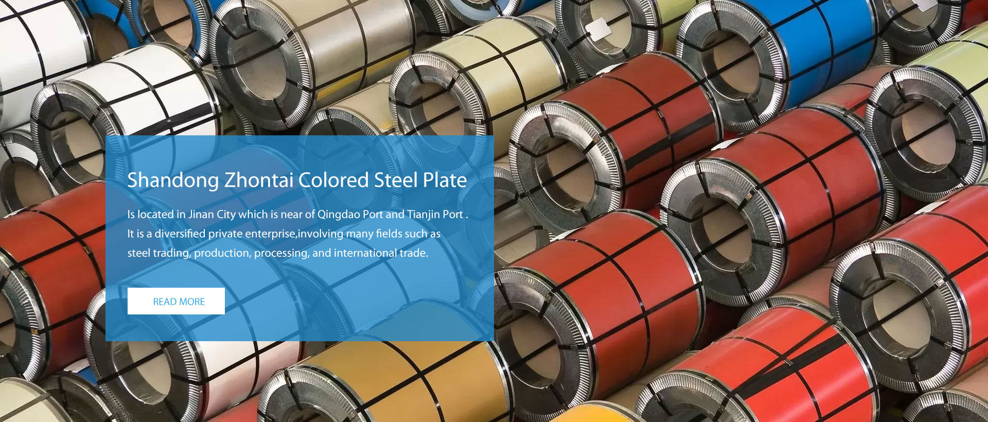 Shandong Zhontai Colored Steel Plate CO., LTD is located in Jinan City which is near of Qingdao Port and Tianjin Port . It is a diversified private enterprise,involving many fields such as steel trading, production, processing, and international trade. Mainly deals in Hot-Rolled Steel Coil, Cold-Rolled Steel Coil , Galvanized Steel Coil, PPGI Coil,Aluminum Coil,Copper Sheet ,Stainless Steel Coil and so on .Our company is currently in a stage of rapid development and has long term strategic cooperation with Shandong Iron and Steel Group (Jinan steel, Laiwu Steel, Rizhao Steel), Shougang, Baotou Steel, Tianjin steel, Nanjin steel, Baosteel and other mills.)